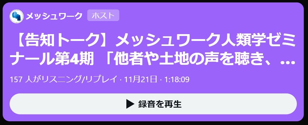 メッシュワーク人類学ゼミナール第4期に関する告知トークを行いました!